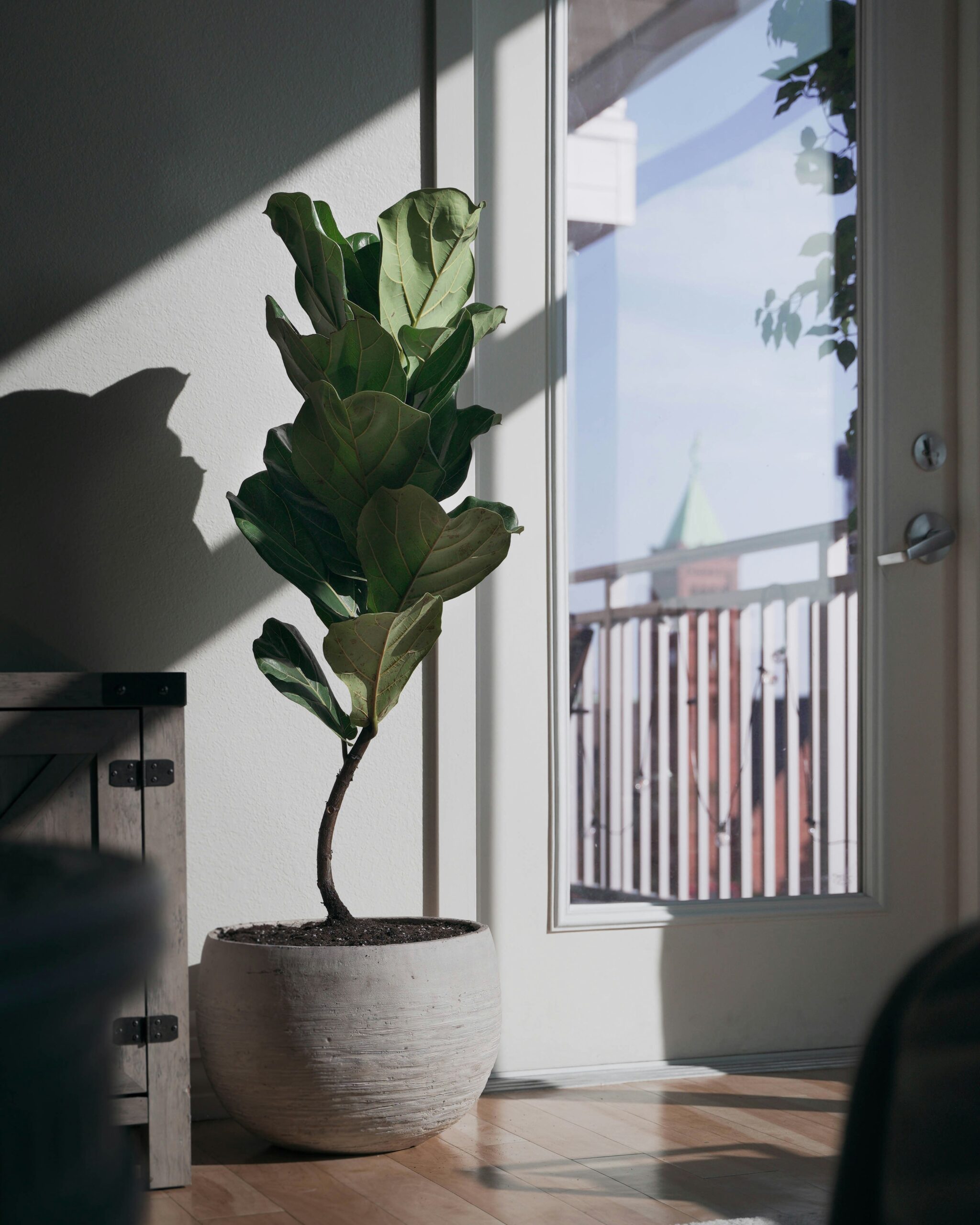 The Fiddle Leaf Fig is a stylish indoor tree with large violin-shaped leaves.